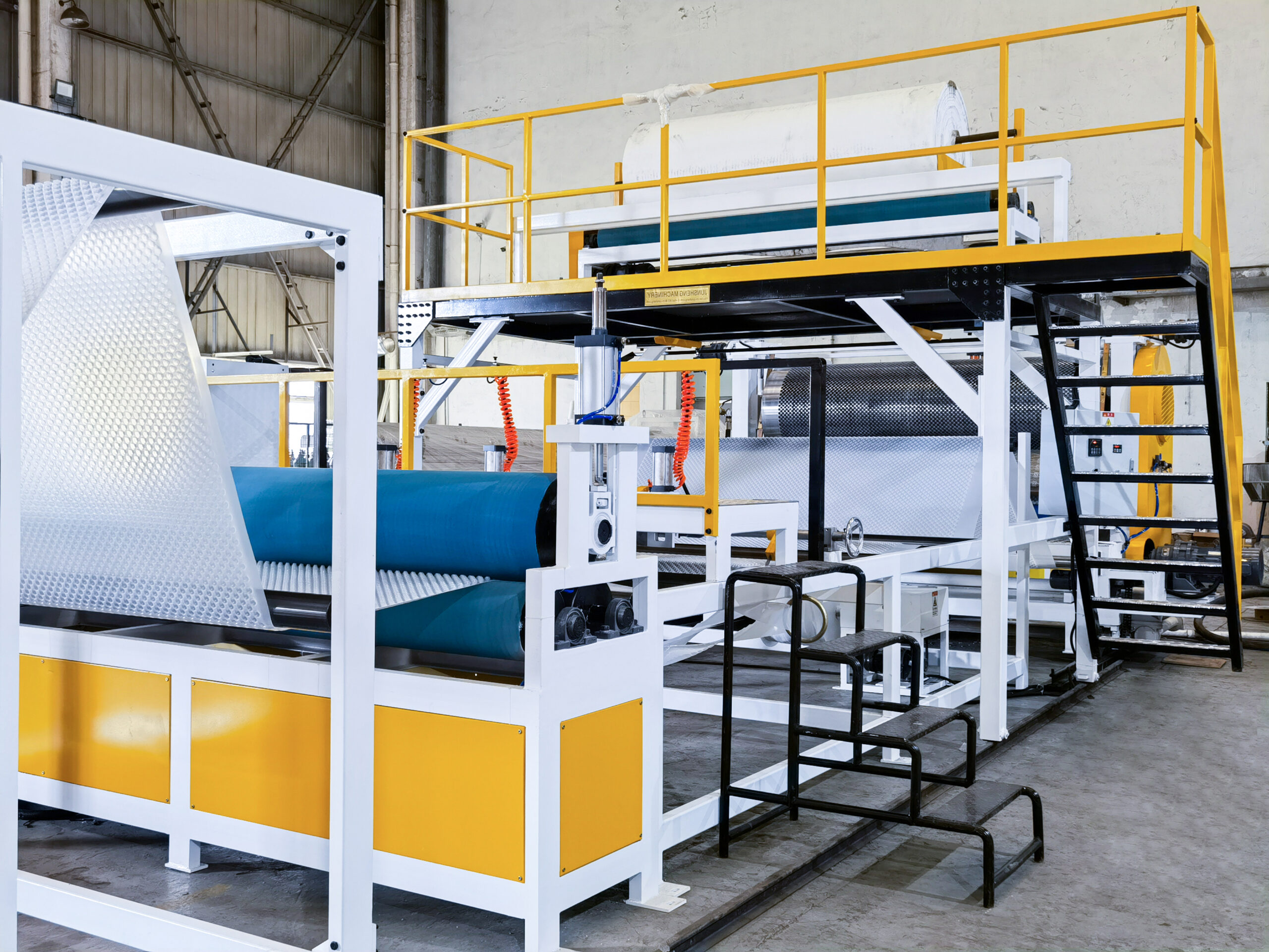 HDPE Drainage Panel Production Line is Junsheng’s innovative machinery in China (patent protected). Under unique mechanics design, Junsheng machine has following advantages: Convex wall thickness of the circular convex on the drainage panel is well-proportioned. Compression strength is 50% higher than similar product, which solves the problem. Power saving 30%. Higher output Same forming roller, with changing different dimples, different sizes will be got. With changing mould, round and square shape. Drainage board thickness range is 0.5-5.5mm, width up to 5000mm. Double color can be produced by another model machine.